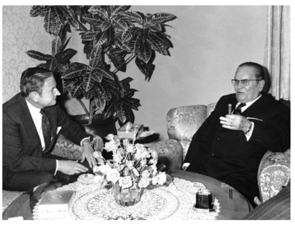 “Filantrop Dejvid Rokfeler, predsednik ‘Chase Manhattan Bank’, jedan od najbogatijih ljudi na svetu, posetio je Jugoslaviju kako bi razgovarao o jačanju poslovne saradnje sa našom zemljom. Rokfeler se u Beogradu sreo sa sekretarom za finansije, Jankom Smoleom, a na Brionima je posetio i predsednika Tita”, pisale su novine u januaru 1973. godine.