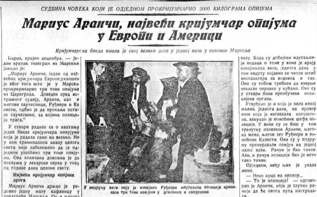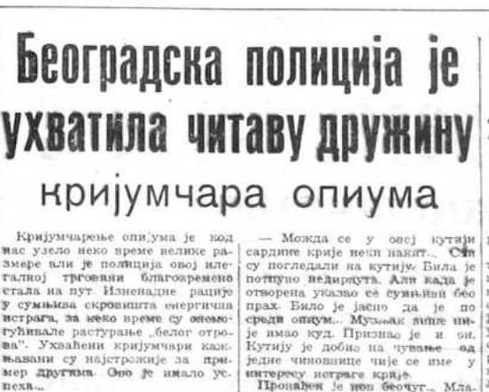 Sve se to dogodilo u februaru 1937, a vest su kao udarnu prenele sve beogradske novine. Niko tada nije ni slutio da će se njegovim hapšenjem odmotati klupko velikog evropskog lanca krijumčara droge.